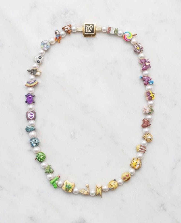 Normally i’m not really into the whole emoji thing. It’s cool when it’s subtle but it can get corny fast. but this? this is different. the colors, the little details, the mix of textures. it feels nostalgic, like something you would’ve made at summer camp. Almost candy necklace esque.